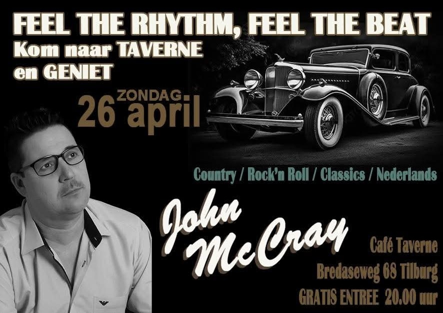Op zondag 26 April gaan we swingen met Rythm and Beat ten gehore gebracht door John Mcray himself.Deze artiest hoeft zichzelf niet meer te bewijzen en staat garant voor een avondje gezelligheid met een hoog dans gehalte.